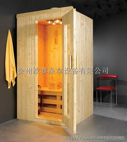 干蒸汽浴(又称芬兰浴木结构)室的整个沐浴过程是坐着的,即在烧红的矿石上加水,产生蒸汽,室内的高温使人有一种身临赤带骄阳之下被干晒着、被吸收着身体水份的感觉。