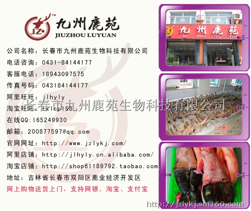 长春市九州鹿苑生物科技有限公司 总部地址:吉林省长春市双阳区鹿业经济开发区