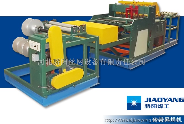 砖带网焊网机采用电子电力同步控制技术,焊接时间与分控焊接均由数字集成化电路组成,控制精度高,性能稳定,焊点牢固,无烧痕。纬丝落料机构采用步进电机控制,从料斗自动取料(专利号:ZL200520024381.3),落料均匀准确,网片边缘整齐,无需裁边。拉网采用弹性拉杆(专利号:ZL200520024380.9) 与网格定位装置,使网格微调容易,网格尺寸精度高,自动分片,自动卷网。