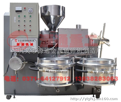 “源通”牌榨油机主要由电器控制、自动加热、调整、传动和真空滤油等部件组成。榨螺由合金钢经渗碳处理,增强表面硬度和耐磨性;榨排经平面磨床磨制,保证油线精度,提高出油率;配电、真空、自动加热等标准部件,选用国内知名品牌,优化机器配置;机器表面采用不锈钢及镀铬处理,符合食品卫生标准 。源通榨油机是在总结和吸取螺旋榨油机优点的基础上,增加了真空滤油装置、炒籽与榨油一体、榨膛自动加热装置与控制系统,优化组合而成的一种自动化榨油机组。源通榨油机广泛用于加工菜籽、棉籽、大豆、花生仁、芝麻、茶籽、葵花籽、桐仁、橄榄、椰子果、棕榈果(仁)等颗粒状油料,亦可用于米糠、玉米胚芽等粉状油料及红花等小宗野生植物油料等。它是广大城乡中小型植物油厂和个体油坊的更新换代产品,是广大用户奔小康的理想选择。
