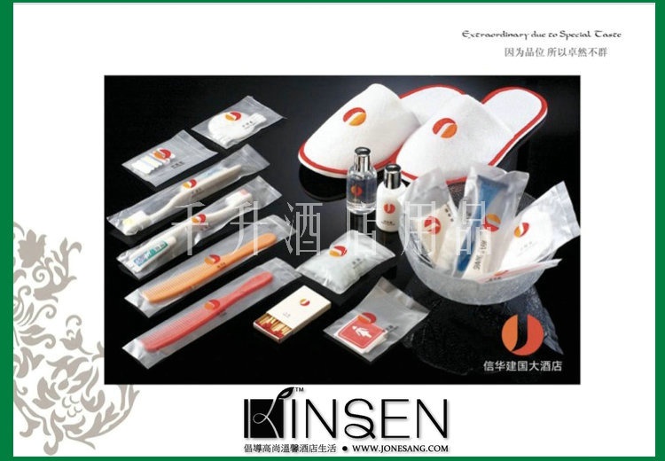 扬州千升酒店用品有限公司是一家严格按照“中华人民共和国旅游行业标准《星级饭店客房用品质量与配备要求》”生产宾馆酒店客房一次性用品的专业制造商的企业:我们自主生产一次性拖鞋、一次性牙具、一次性香皂、旅游用品、一次性梳子、软管或瓶装洗发水、沐浴露、润肤乳、护发素、擦鞋布、袋泡茶、擦鞋器、客房床上用品、毛巾、浴巾、方巾、地巾等一次性旅游、酒店客房用品系列,并承接国内外OEM订单。