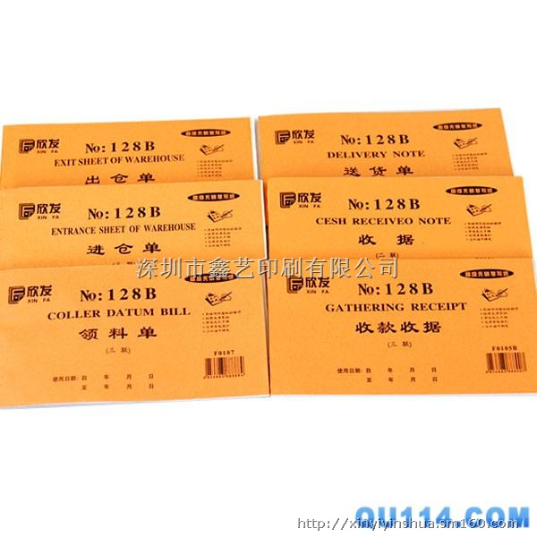 深圳鑫艺印刷承印:出入库单、收发货单、采购单、销售清单、结帐单、收银单、入住登记表、医院银行各种凭证、薪资单、牛皮菲仔纸、工厂流程单等。直接厂家,价格最优