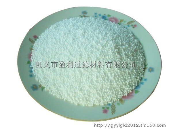 泡沫滤珠是由进口聚苯稀树脂颗料经高温两次发泡制成的白色球状滤料。若将其覆盖于压力综合净水器的上部,当浑浊度500mg/L原水经过这种泡沫塑料颗粒过滤层过滤后,出水浊度可降低到5Mg/L,达到国家饮用水标准。这种压力净水器,把水质净化中的混凝、清和过滤三道工序在一个容器内完成。由于简化工艺流程,设备简单可告,可以直接供应水塔和用户,目前国内已经用于中小型经水设备,也用于内河船舶给水系统。机构强度高,密度大约在100kg/m3-300kg/m3之间。