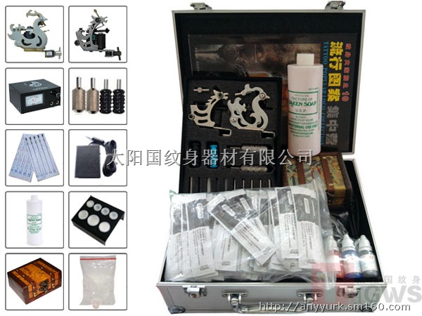 太阳国纹身器材有限公司--主要销售:暂时纹身模板、纹身机、洗纹身机、喷绘纹身机、纹身色料 纹身机套装200元起价(包括铝皮箱),纹身耗材(电源、勾线、脚踏板开关、一次性纹身针、手柄、针嘴、色料架、色料杯、一次性纹身手套、纹身教程、练习皮、防疤膏、智能彩色纹身图籍、空黑色/银白色铝皮箱、转印纸等)