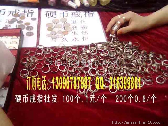 硬币戒指(项链) 是用类似硬币的材料做成的戒指(项链),因为用硬币做戒指(项链)是犯法的,所以市面上不可能有真硬币做的戒指(项链) !不然会被警察拘留的 在广东,北京,上海,福建等地都卖疯了,市场价卖3、5、8、10、15、元不等,现在戒指批发价为 1元一个,100个起批。0.8元一个,200个起批。0.6元一个,500个.1000个,0.5元。5000个以上,0.45一个。项链批发价:2.5元/条50条起批。“硬币做成的戒指不磨损,不掉色!不比黄金白银差,另外,“把钱套手上还能给人带来财运的说法”,故被众多工薪阶层和白领阶层人士所信赖,今年“ 硬币戒指(项链)”在深圳,北京,上海,南京等地区消量及为广泛,几乎巷闻皆知,成为小饰品中的佼佼者。由于此物有品质好,价格低,利润高等特点,成为众多小商贩,饰品店,手饰加工店,礼品店等经营者之首选。本处厂家直销,量大者更优惠!款式有很多!
