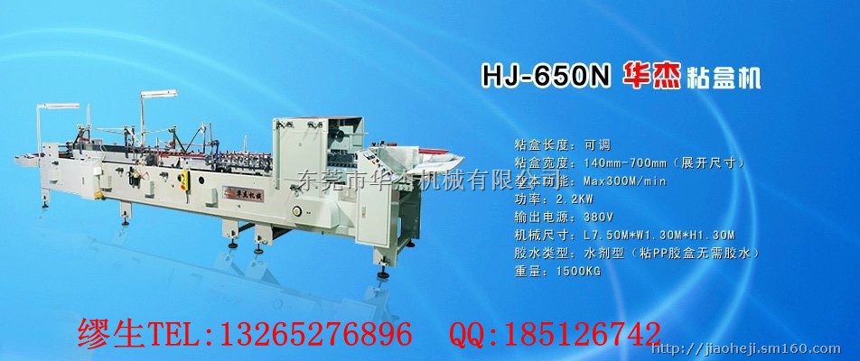 注:东莞市华杰机械全自动胶盒机视频http://www.tudou.com/programs/view/PozdotGc4Ms 另我司全自动、半自动胶盒粘盒机可加装PUR、热熔胶装置,uv胶水机,如有需要可另行加装。