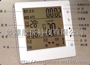 室内智能空气质量控制器是一款多功能型的家居智能空气质量、环境监测控制产品,能实时有效的监测室内空气质量及温湿度的实时变化情况,并智能控制新风系统对室内空气质量及环境温湿度进行调节,始终保持室内空气质量及环境的最佳状态。控制器实时数字显示室内VOC气体浓度和温湿度数值,让用户可以随时掌控室内空气环境质量。用户也可以根据个人要求自行手动设定VOC浓度及温湿度报警参数,控制器可以根据用户设定的参数智能运行新风设备,使室内空气质量及环境更贴合用户特定要求。