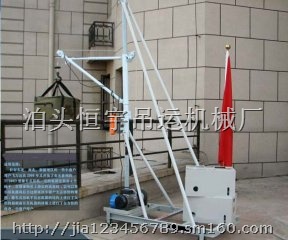 三是假如吊运货品过多时,或大量吊运时时,可以在室内吊运,后面压上恰当的配重,大大提高了吊运的安全性。底座下面配有滚动轮可以前后推进,解决了小窗口问题。四是碰到楼层高度过高时,或阁楼等室内.室外.屋顶都可以压配重吊运。以前的机型在室内运用室外架过长安装比教费事,有了恒基牌小吊机,一机多用,轻松搞定。室外运用需底部插上直径48mm的加长管,并在尾部压配重。