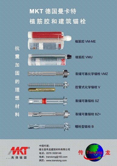 德国曼卡特公司凭借其雄厚的技术力量和卓越的产品开发能力,以最新的行业技术规范和标准为准绳,针对现代工程应用的需要,不断进行技术创新,开发并向市场推出新产品。经过十几年的发展,产品质量和公司人均产值在同行业中均遥遥领先。例如MKT注射式化学粘结裂缝可靠锚栓VMZ是目前世界上承载力最高、适用于开裂和非开裂混凝土的化学粘结锚栓;