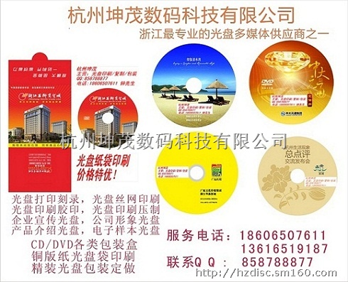 杭州坤茂数码科技有限公司是一家专业从事CD、CD-ROM、VCD、DVD等光盘制作、光盘印刷、光盘包装服务的综合性公司。公司经营期间为各企业事业单位进行专业的光盘制作、光盘刻录、光盘复制、光盘胶印、光盘丝印、光盘打印、光盘包装。