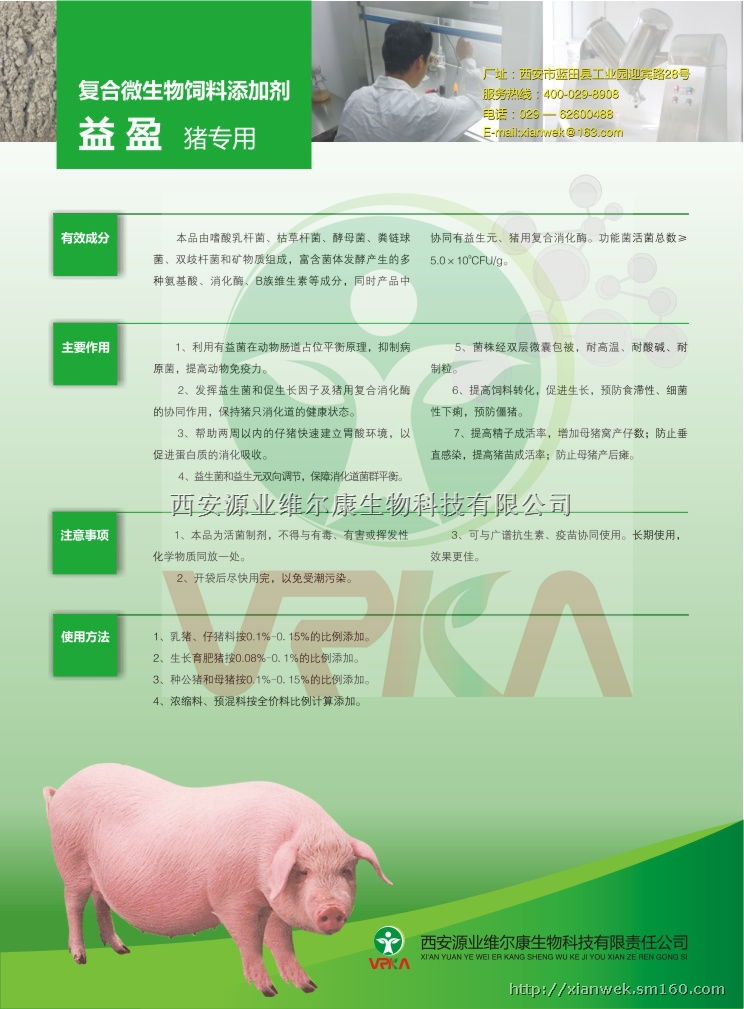 作用及适用范围: 抑制病原菌,提高免疫力;促进消化吸收,提高饲料转化,预防食滞性僵猪。适用于猪的饲养全程。