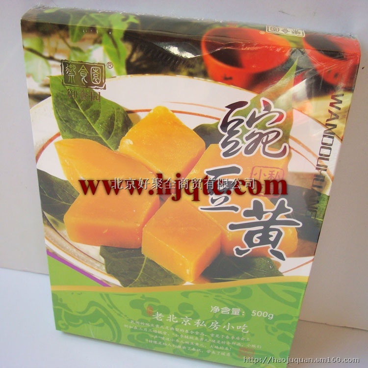 豌豆黄是北京传统宫廷休息茶点糕点小吃。按北京习俗,农历三月初三要吃豌豆黄。因此每当春季豌豆黄就上市,一直供应到春末。北京的豌豆黄分宫廷和民间两种。豌豆以张家口出产的花豌豆最好。豌豆黄是北京传统小吃,同芸豆卷一起传入清宫,现在御食园公司结合老字号文化传统和现代科学技术制作出真空包装豌豆黄很多口味供客户选择,常年有货