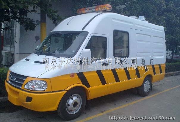 可选装配置: 选装行李架、爬梯、车顶工作台;选装警示灯,选装不同结构形状的警示灯;选装外挂升降杆、外挂备胎架;。根据需求选择人座位数量、中隔断(可选择开门)、加装设备工具柜、工具操作台、配电箱、发电机组、污水泵、电焊机、特种动力柜、发电机安装、外接电源系统、花纹铝板、线路安装、室内灯光照明系统、探照灯、高杆照明灯、车身两侧可选开上掀门、盲窗、侧开门、绕线盘、外观根据需要在车身制作专用图案或标识、可根据客户不同需求加装不同的维修抢修设备;