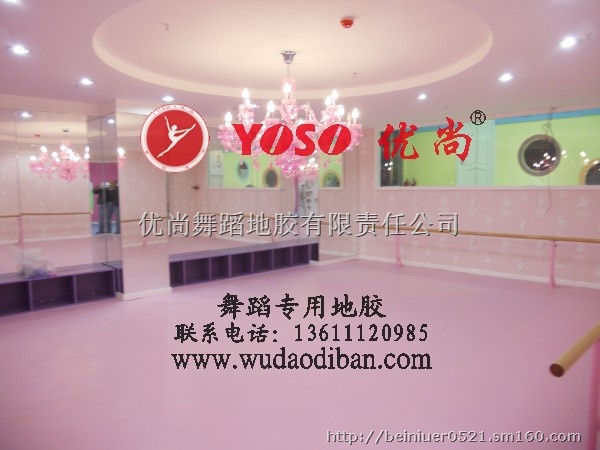 舞蹈房地板胶采用100%纯软质的聚氯乙烯优质材料,面层经特殊高环保高科技材料TPU技术处理,及具最佳耐久性和耐磨性,从而增加了地板的使用寿命。
