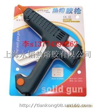 品名:热熔胶枪型号:YT-303品牌:永韬应用:适用于直径10.8-11.8mm的白胶条。主要技术参数:工作电压:AC:100~240V表面温度:180~250℃最大电流:≤3A额定功率:60-150W电气强度:3750V/min主要特点:造型美观大方,稳重耐用,手感好,操作轻巧,专利产品,CE和ROHS环保认 证。