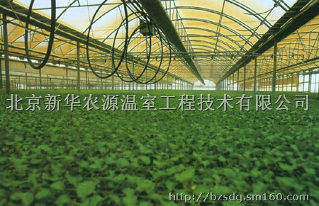 薄膜连栋温室有单层薄连栋温室和双层充气膜温室.单层膜连栋温室主要以单层塑料和为覆盖材料,有拱顶和尖顶两种。单层膜连栋温室采用热镀锌钢骨架结构装配,防腐防锈,温室内部操作空间大,便于机械化作业,而且温室采光面积大,新膜透光率可以达到95%。