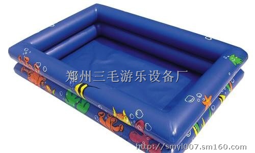 ②它的用途主要是供儿童玩耍,在玩耍时,在充气水池里面放上一些小鱼,让儿童在充气水池里面捕捉,不但开发了儿童好动的个性,还提高了自身的能力,而且给儿童增加了生活乐趣!当然,充气水池还可放水上步行球或儿童手摇船等设备,规格大小可以根据客户需求订做。