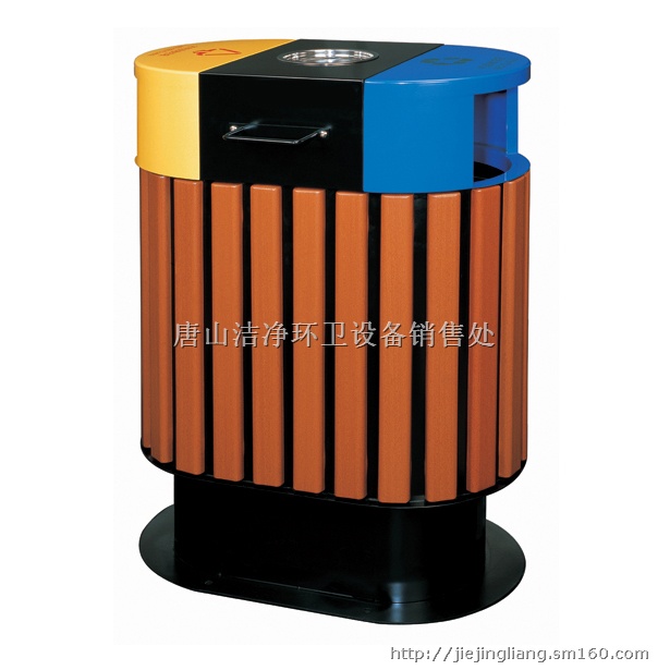 外观简洁大方的分类垃圾桶是户外街道及公园的一道美丽的风景线,时刻提醒您要保卫我们的家园清洁。连体式木身分类垃圾桶,该产品连体设计新颖,木身外形美观耐用。