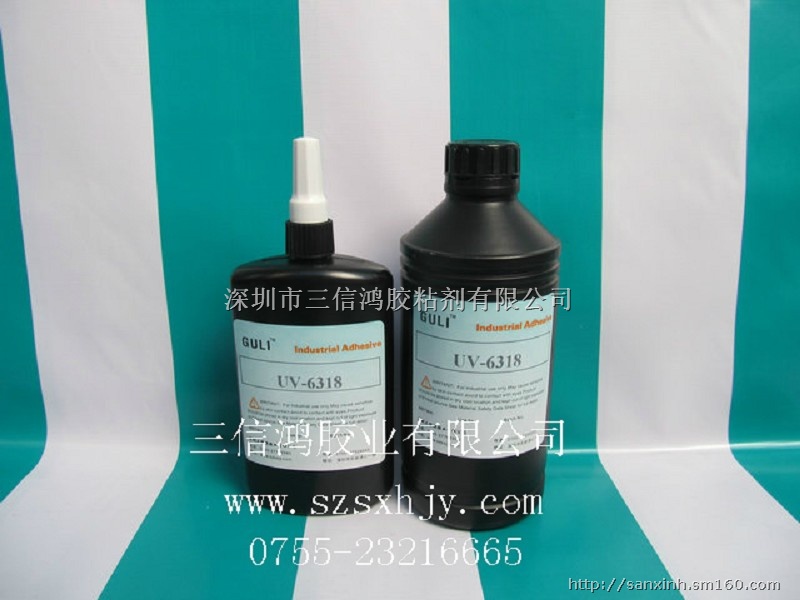 深圳市三信鸿胶业有限公司生产销售的“固力”6000系列紫外线胶水,主要用于粘接和固定其是一款不含溶剂的胶粘剂,在紫外线照射下数秒钟内固化.UV-6318对于塑胶透明材料之间的粘接以及塑胶材料与金属之间的粘接都有优良的效果.