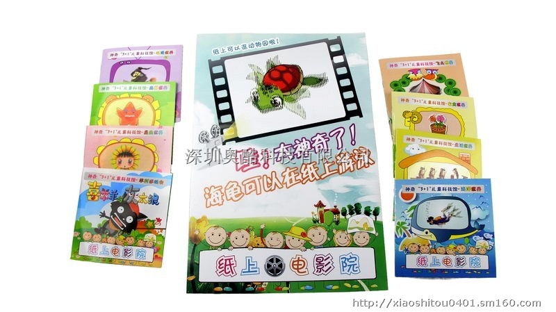奥酷纸上电影院是一款适合3-12岁的小朋友玩的智力玩具批发,轻轻移动魔法电影播放胶片,纸上的小动物就可以动起来,可爱的小海龟在纸上欢快的游泳,漂亮的骏马在纸上飞快的奔跑,在纸上就能看电影,太神奇啦,太好玩啦!