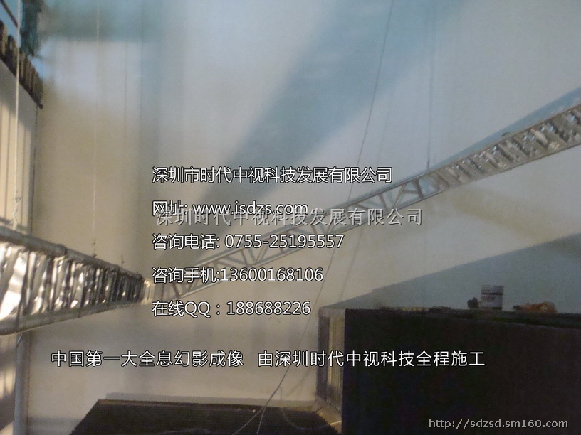 是基于“实景造型”和“幻影”的光学成像结合,将所拍摄的影像(人、物)投射到布景箱中的主体模型景观中,演示故事的发展过程。绘声绘色,虚幻莫测,非常直观,给人留下较深的印象。由立体模型场景、造型灯光系统、光学成像系统、影视播放系统、计算机多媒体系统、音响系统及控制系统组成,可以实现大的场景、复杂的生产流水线、大型产品等的逼真展示。