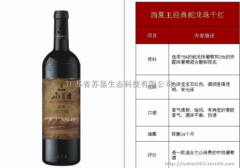 原料:选用80%的蛇龙珠葡萄和20%的赤霞珠葡萄混合酿制而成