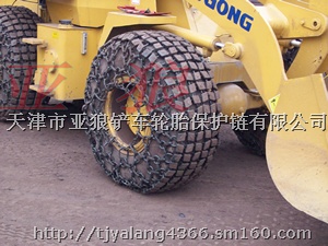 亚狼链业的加密型轮胎防滑链,适用于所有的工程机械轮胎型号,亚狼加密型轮胎防滑链的链节尺寸是76mm*60mm*42mm,外观属于方形的节,然后这种方节和环相连接组成的链条保护性比菱形节的全面,加密型防滑链的缝隙小,像实际路面中的较细小的废料堆,碎渣,铁渣,玻璃渣,钢渣可以在轮胎行驶过程中加密型防滑链会自然地把那些碎渣阻挡。亚狼牌加密型轮胎防滑链适用于各种型号的工程机械车,