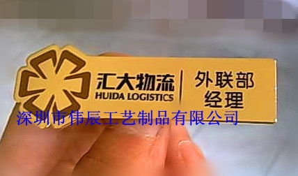 金属胸牌:系选用高级进口铜材,经冲压、腐蚀、电镀、填漆等多工序精工制成。工艺精细,美观大方,尊贵典雅。具有比普通工号牌更显档次更持久耐用,不褪色不变型等特点,充分体现出企业一定的文化内涵。