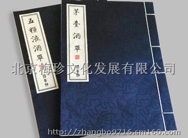 其他白酒类产品画册及文化画册都可以用古本线装的形式来表现。前后加艺术纸张,封面用真丝绫绢装裱,更能提高酒产品的附加价值。