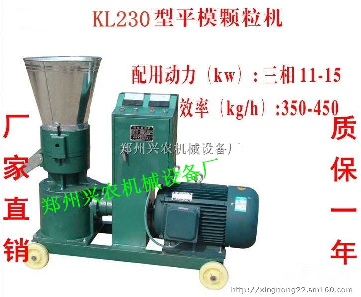 KL 230型饲料颗粒机采用万向节、差速器与电机连接主要适合于中、小规模养殖专业户等加工制作各种畜禽及水产颗粒饲料,可降低养殖成本。工作时将已混合好的粉状饲料加入料斗,不需加热加水,不需烘干,自然生温至70-80度,经挤压一次成形,加工颗粒表面光滑,硬度适中,内部熟化深透,可使淀粉糊化,蛋白质凝固变性,提高了营养价值和消化吸收能力,保证饲料质量并可长期储存。适用动力15KW,时产300-400公斤。