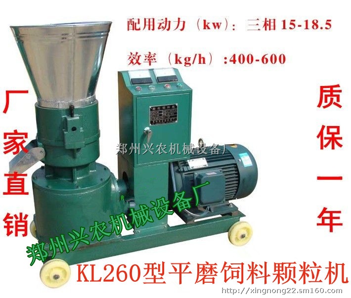 260型颗粒机: 产量500-600Kg/h 电压:380V 功率:18.5KW