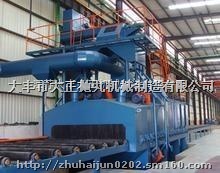 专业生产高效环保节能圆钢除锈机,辊道通过式除锈机,清理过程中由电气控制的可调速输送辊道将圆钢送进清理机室体内抛射区,其周身各面受到来自不同坐标方位的强力密集弹丸打击与磨擦,使之其上的氧化皮、锈层及其污物迅速脱落,圆钢表面就获得一定粗糙度的光洁表面,在清理室外两边进出口辊道装卸工件。落入圆钢上面的弹丸与锈尘经吹扫装置吹扫,撒落下来的丸尘混合物由回收螺旋输送到室体漏斗、纵横向螺旋输送机汇集于提升机下部,再提升到机器上部的分离器里,分离后的纯净弹丸落入分离器料斗中内,供抛丸循环使用。抛丸清理中产生尘埃,由抽风管送向除尘系统,净化处理后的净气排放到大气中,颗粒状尘埃被捕捉收集。连续式直通钢筋除锈机常见的有1根、5根、l5根、60根,最多100根。为了保证清除铁皮的效果,一般配置2~6个抛射装置,这些抛丸轮配置在线材的上部或下部,可纵向抛射,也可横向喷射,抛出的丸粒扇面要覆盖线材通过的整个宽度。