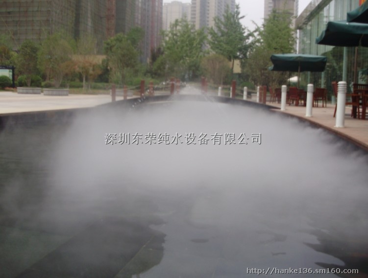 3.降温:气雾状的雾分子,能有效吸收空气热量,降低局部环境温度,其低廉的运营成本,有效的降温效果,已经在世博会及诸多景点进行了广泛的运用和认可,已经成为公共空间、小区等室外降温的新元素。