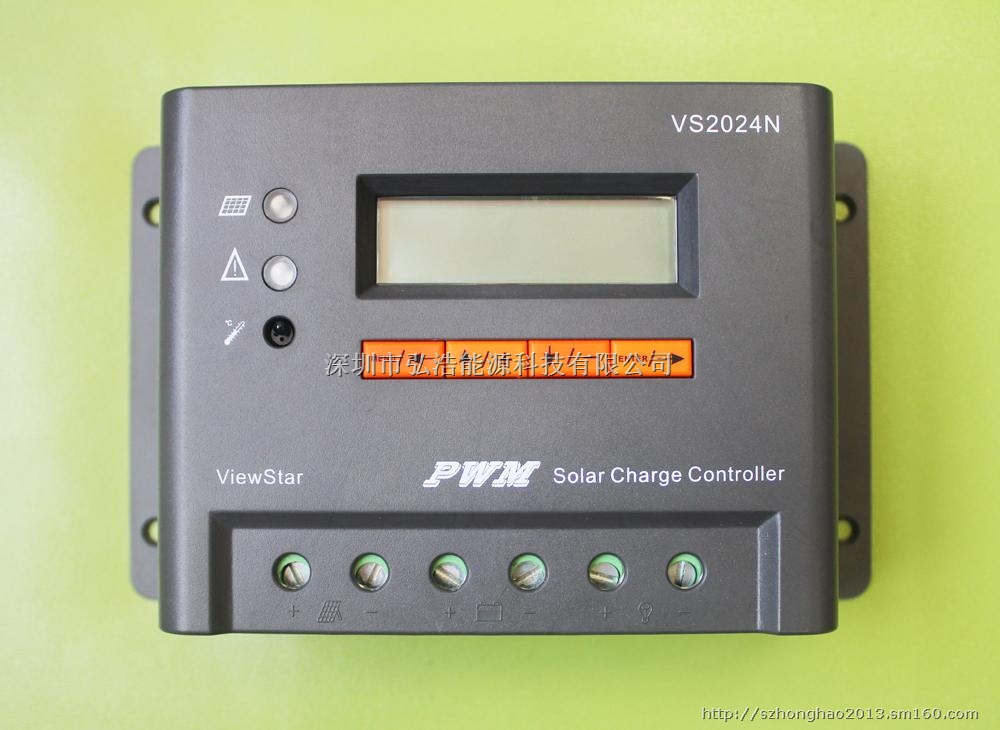 性能特点:控制器由CPU控制,根据蓄电池电压高低,调节充电电流大小,决定是否向负载供电,并具有以下性能: 经常保持蓄电池处在饱满状态 防止蓄电池过度充电 防止蓄电池过度放电 防止夜间蓄电池向太阳能板反向充电 蓄电池反接保护 太阳能极板反接保护 负载电流超过控制器额定电流,控制器自动保护并锁死,显示“Overload” 负载短路,控制器自动保护并锁死,显示“Load short” 电池电压过低,控制器会切断负载,显示“Battery low”,若电池电压升高,负载自动恢复 控制器可以对雷击进行保护 控制器正常工作时,以5秒为周期轮流显示电池电压、充电电流和负载电流 控制器长期累计并存贮蓄电池充电安时数和放电安时数 控制器开机时会根据电池电压等级自动设置停充电压、负载停机电压、负载恢复电压,这些参数均为环境温度25℃时的默认值 根据环境温度的变化控制器会自动对充电电压进行温度补偿 用户可以根据自己的需要,自行设置停充电压、负载停机电压、负载恢复电压三个参数 为防止电池过度放电,控制器自动控制最低负载停机电压,不得小于10V(对于12V电池)或20V(对于24V电池),小于此值“-”键不起作用 若用户恢复默认值,可按下“Menu”键5秒以上即可