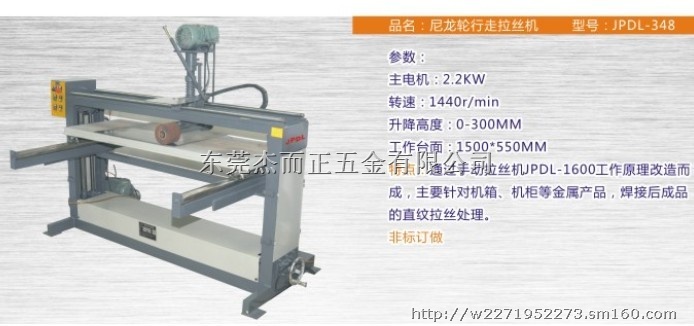 特点:通过手动拉丝机JPDL-1600工作原理改造而成,主要针对机箱,机柜等金属产品,焊接后成品的直纹拉丝处理