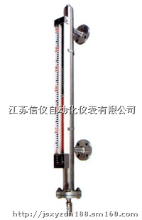 XY磁浮子翻板液位计是以浮子内磁钢驱动双色薄片的翻转来指示液位的一种新型仪表。主体内磁浮子随液位的升降而上下运动,同时驱使主体外指示器内的双色薄片翻转,有液位时转示红色、无液位时转示黑色。红色和黑色色带间的界线即代表液位高度。在指示器左侧配有醒目的刻度标尺。从而使液位的指示显得更加清晰。