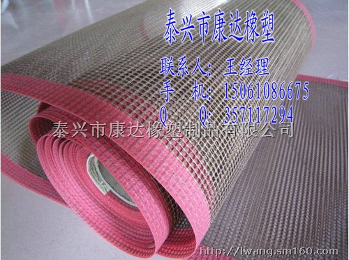 4、铁氟龙传送带非粘着性:特氟龙输送带不易粘附任何物质。易于清洗附着其表面的各种油渍、污点或其它附着物;浆煳、树脂、涂料等几乎所有粘着物质都可简单地清除;