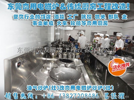 东莞市莞发厨房设备厂专业是集于研发、生产、销售为一体的大型厨房设备生产厂商,专注于商用电磁炉3.5KW~30KW的大炒锅、抛炒锅、煲汤炉、蒸饭柜、海鲜蒸柜的生产与销售。专业为企业从事工厂、酒店、学校、医院、等各大型企业职员厨房设备、热水设备及其配套工程的策划、设计、制造、销售、安装及维修一条龙服务的现代化企业。