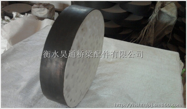 桥梁橡胶支座是由多层橡胶与钢板硫化粘合而成,它有足够的竖向钢度,能将上部构造的反力可靠的传递给墩台;有良好的弹性,以适应梁端的转动,又有教大的剪切变形能力,以满足上部构造的水平位移。在板式橡胶支座表面粘复一层1.5mm-3mm厚的聚四氟乙烯板,就能制作成聚四氟乙烯滑板式橡胶支座它除了竖向钢度与弹性变形,能承受垂直荷载及适应梁端转动外,因聚四氟乙烯板的低摩擦系数,可使梁端在四氟板表面自由滑动,水平位移不受限制,特别适宜中、小荷载,大位移量的桥梁使用。