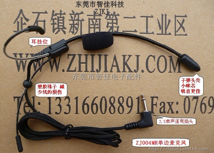 品名:头戴式麦克风(ZJ004MR左耳式) 品牌:智佳科技