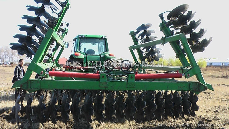 拖拉机偏置重耙折翼重耙圆盘耙土地耕整机械 0534-2392122:该系列偏置重耙适用于粘重土壤的耕后碎土及中轻土壤的“以耙代耕”耕前灭茬。主要采用国际先进设计理念,以钢结构为耙架主体,配液压升降轮胎,弹簧调平机构等设备,具有坚固耐用.运输方便.维修保养简单等优势。特别适用于大型农场的土地耕作。
