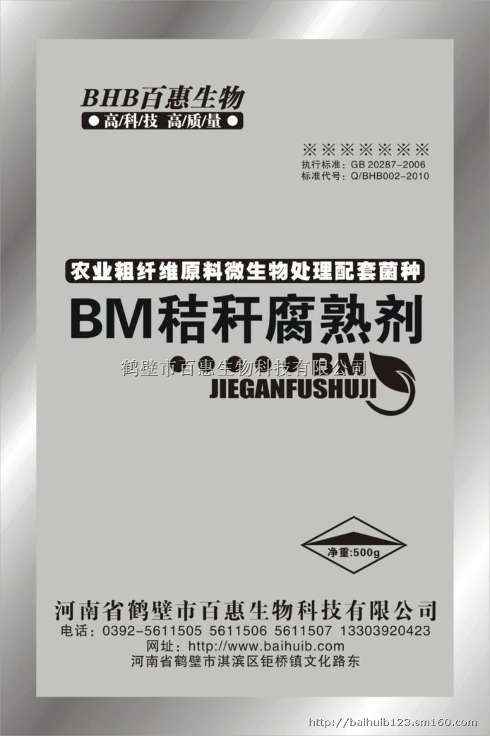 BM秸秆腐熟剂由能够强烈分解纤维素、半纤维素、木质素的细菌、真菌、放线菌和生物酶组成。在适宜的条件下,能迅速将秸秆中的碳、氮、磷、钾、硫等分解矿化,形成简单有机物,从而进一步分解为作物可吸收的营养成分。本品可有效抑制秸秆中的病虫害等有害物质,增强后茬作物的抗病能力,其中所含的一些功能微生物兼有生物菌肥的作用,对作物生长十分有利。