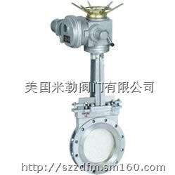 PZ973H、PZ973F、PZ973Y 电动刀型闸阀(刀闸阀):电动驱动、对夹式连接、明杆平行式刚性单闸板,阀座密封面为硬质合金与聚四氟乙烯,公称压力 PN10~16,阀体材料为碳素钢(PZ973H-10C~16C)、不锈钢(PZ973F-10P~16P PZ973Y-10P~16P),具有排渣功能的的闸阀。