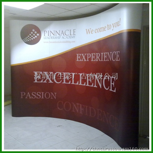 拉网展架广泛应用于高端学术会议,商务会议,展览会等各种场合。对于拉网展架这样精品展示器材,必须有专业的制作团队才能保证其质量:架子稳固,磁条不脱胶,画面完美拼接,包装细致,运输方便,还要教会客户正确的使用和保养方法!质量和服务缺一不可!深圳生彩广告给您优质的产品和一流的服务!