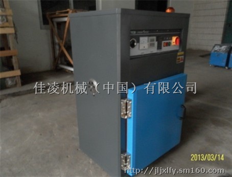 箱型干燥机将需烘干的物料放入活动料盘中,当接通电源运行时,强力风轮启动迫使由进风口进入的空气吹向电热管,空气经过电热管加热升温,并穿过带孔的隔墙,均匀吹向物料,携带了水份的空气将由顶部的排湿风机抽出烤箱之外。如此反复循环则达到排湿、干燥之效果。
