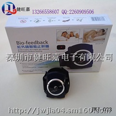 腕式电子止鼾器是一项采用生物回馈的自我训练模式。来降低或减少打鼾行为的一种物理康复仪器。它的过程是透过止鼾器上的微型生物声频侦测器,在侦测超过70+5dB的鼾声10=1秒以上,控制IC即启动脉冲输出机制,以温和的可调的电子针灸方式,透过皮肤送达运动神经,再不吵醒使用者的前提下,促使使用者因反射作用产生变换睡姿,达到抑制和减少打鼾的功效。本品还有省电功能设计,当超过30秒以上侦测不到鼾声时,则自动关机。而累积使用8小时以上即自动关机。只要持之以恒地使用本品,就能达到满意的效果。
