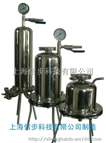 不锈钢桶式过滤器,适用于小容量科研、医院、实验室等单位,对各种液体的澄清除菌处理,本滤器特别适用于各种微孔滤膜,可以和真空泵和空气压缩机配套作抽滤和压滤,又可和一般加泵配套使用,达到一机多用的优点。 使用方法: 可用真空泵抽滤或空气压缩机压滤,还可作板框多层过滤器和封闭式液体配制循环机组和剩液过滤,节约原材料的应用,又可和一般加压泵配套使用,能达到一机多用的优点。