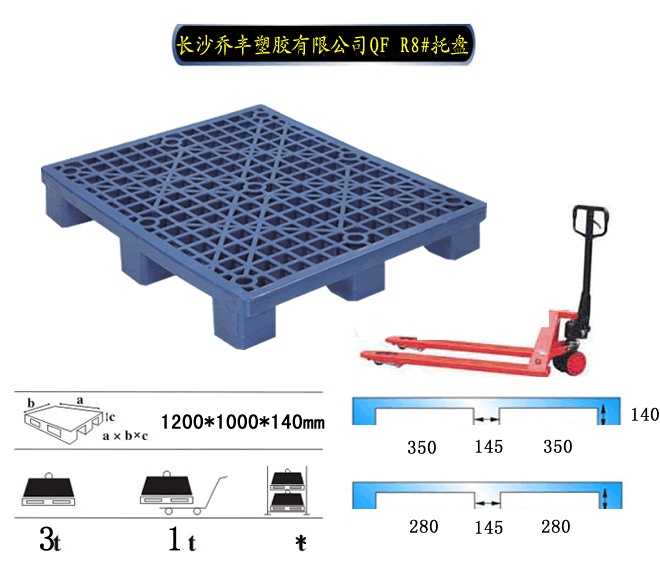 塑料托盘(pallet)是为了便于货物装卸、运输、仓储,出口和配送等而使用的由可以承载若干数量物品的负荷面和叉车插口构成的装卸用垫板。它是物流产业中最不起眼,却又无处不在的一种物流器具,是静态货物转变为动态货物的主要手段。