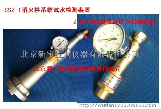 SSZ-1消火栓系统试水检测装置(消火栓测压接头)又称消火栓测压仪、多功能消防试水装置、消火栓测压接头是用于检测室内消火栓的静水压,出水压力,并校核水枪充实水柱的专用装置。根据GA503-2004《建筑消防设施检测技术规程》规定,消火栓栓口处的静水压力应符合设计要求,且不应大于0.8MPa。消防水泵启动后,栓口出水压力应符合设计要求,且不应大于0.5MPa。性能参数:公称通径:65mm;公称压力:1.0 Mpa;压力表量程:0-1.6Mpa;压力表精度:2.5级