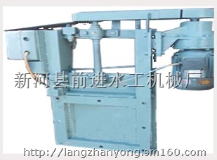 插板闸门主要由门架、门框、门体、密封止水橡胶、丝杆、启闭装置等部件组成。1、主要结构(1) 门框、门架采用钢板在剪板机上下料,在折弯机上折边,在专用工作台上拼装焊接。结构牢固合理,能承受活动载荷,门框保证在受到启闭机重力和启闭力反作用力时不变形。(2) 门体用钢板加工成方形板,在其迎水面用钢板焊接“井”字形加强筋。确保了门体的不变形。闸门为暗杆式启闭,在门体上部的重垂线部位设置启闭螺母,留有丝杆通道,保证闸门平稳地升降。(3) 止水橡胶采用优质产品,此产品弹性高,止水效果好、耐腐蚀、抗老化。用钢板压条和螺栓把止水橡胶固定在门框边上。(4) 丝杆采用圆钢精加工而成,其螺纹精度达7e级标准,保证了与启闭螺母的密切配合。